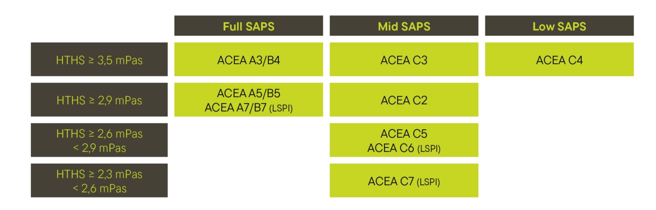 ACEA C7 est une nouvelle catégorie d'huile moteur Mid-SAPS (faible teneur en cendres sulfatées, de phosphore et de soufre) à très faible viscosité HTHS (entre 2,3 et 2,6 mPa.s) en grade de viscosité SAE 0W-16. Ces lubrifiants sont conçus pour être utilisés dans les moteurs à essence et les moteurs diesel à hautes performances avec des intervalles d'entretien prolongés, où des systèmes de post-traitement avancés tels que les filtres à particules diesel (DPF) et les catalyseurs à trois voies (TWC) sont utilisés. Ces lubrifiants disposent d’un paquet d’additifs qui garantissent une protection fiable contre le pré-allumage à bas régime (LSPI), l'usure prématurée du turbocompresseur et la formation de dépôt dans le turbocompresseur.